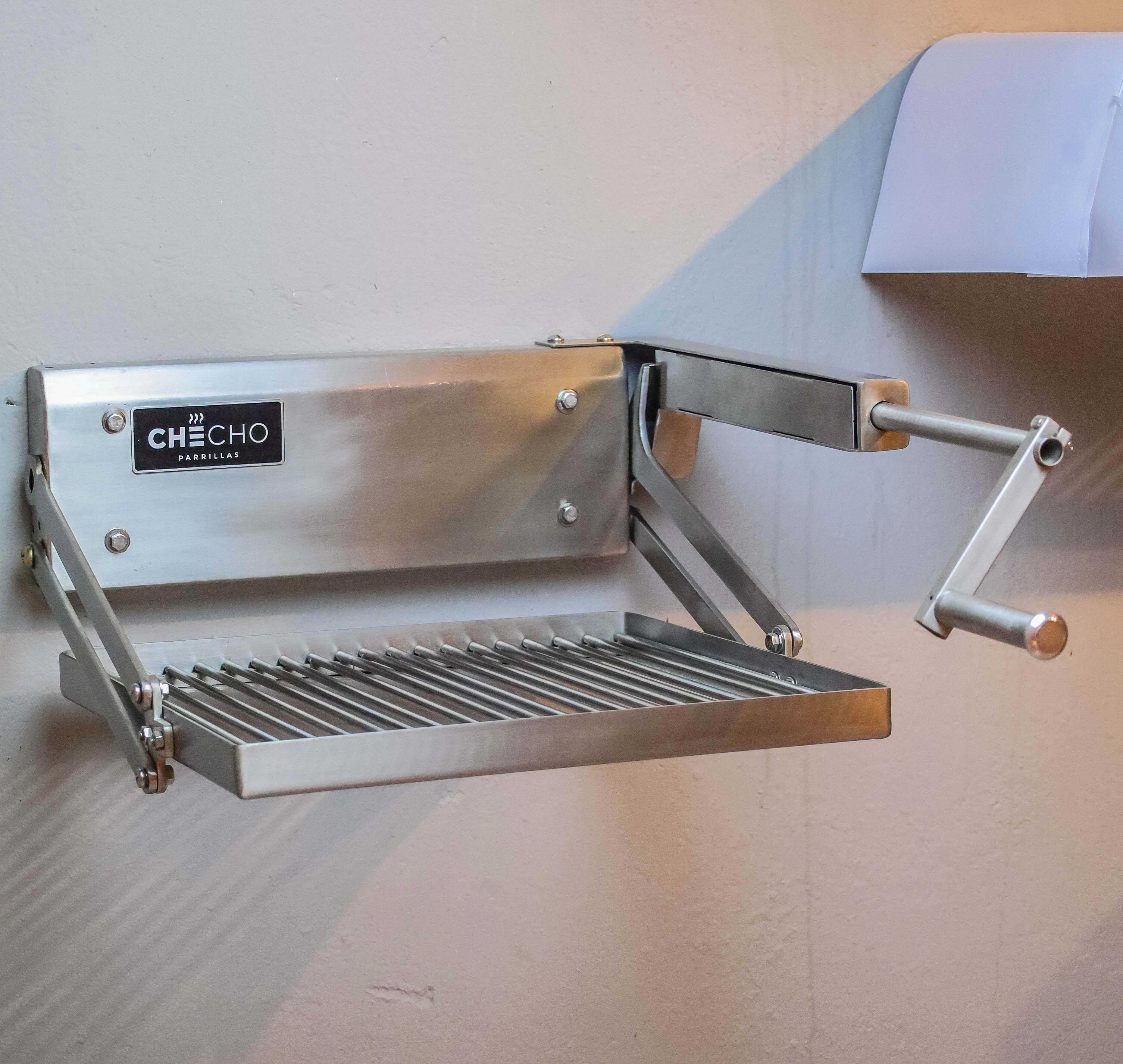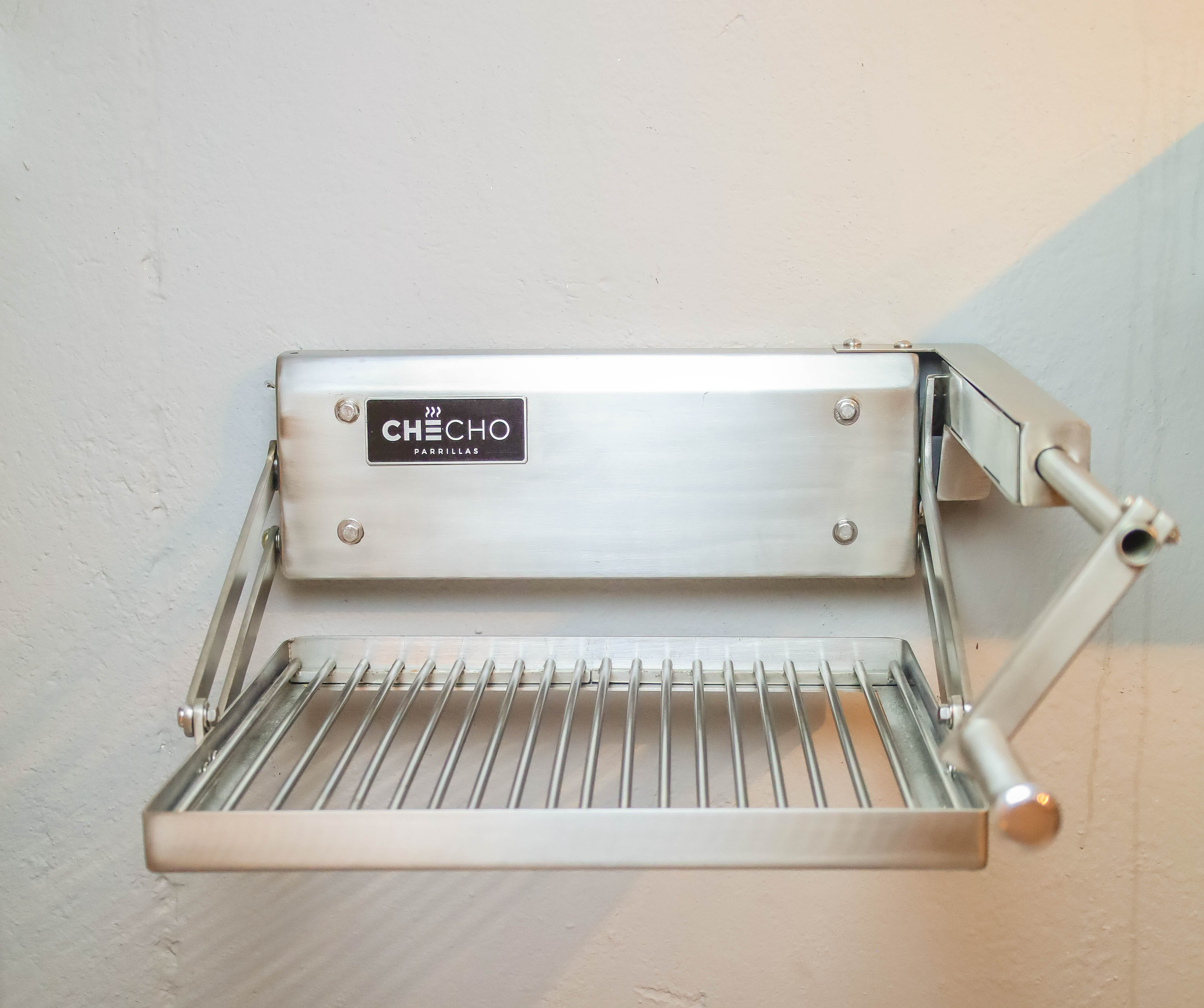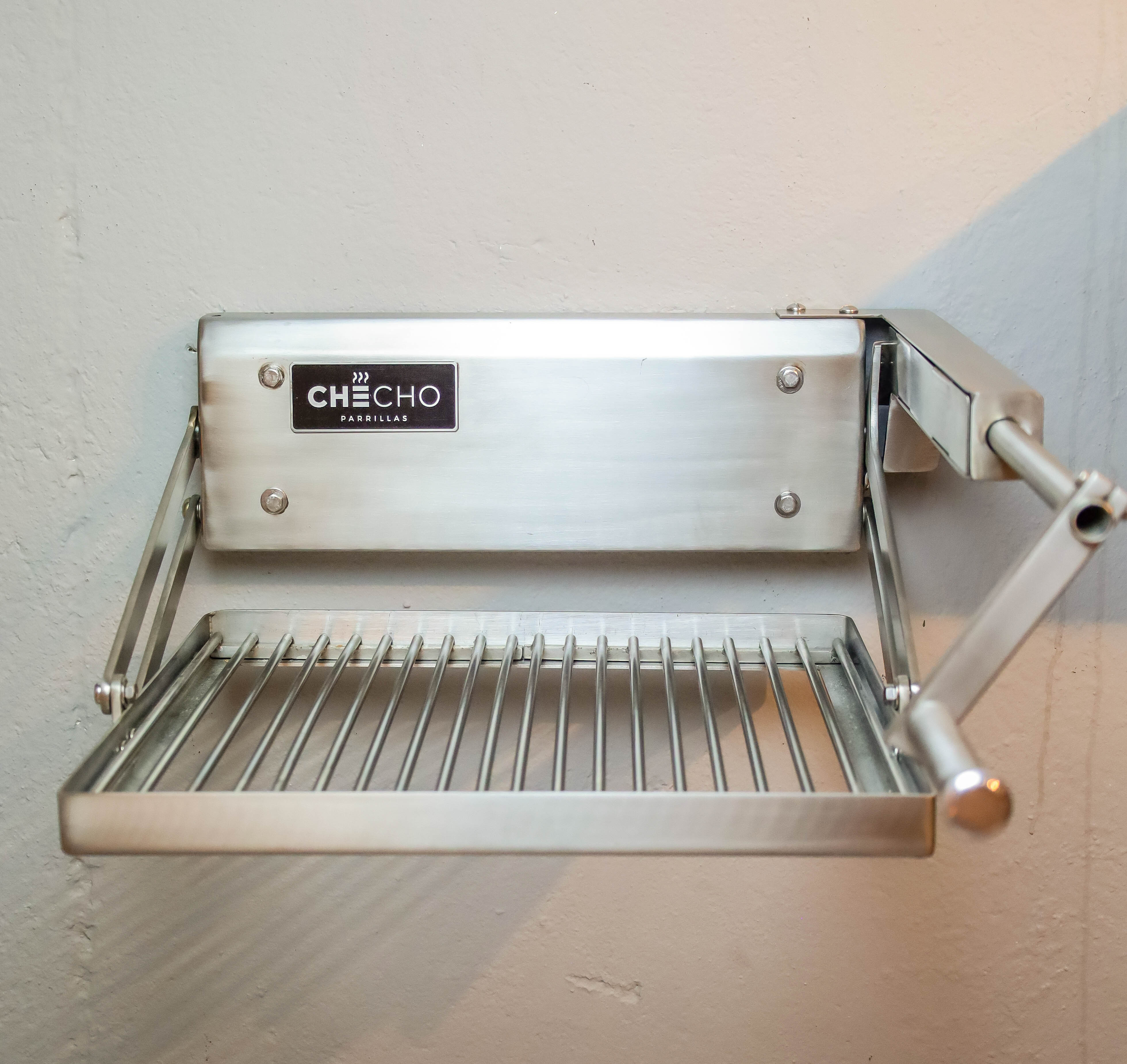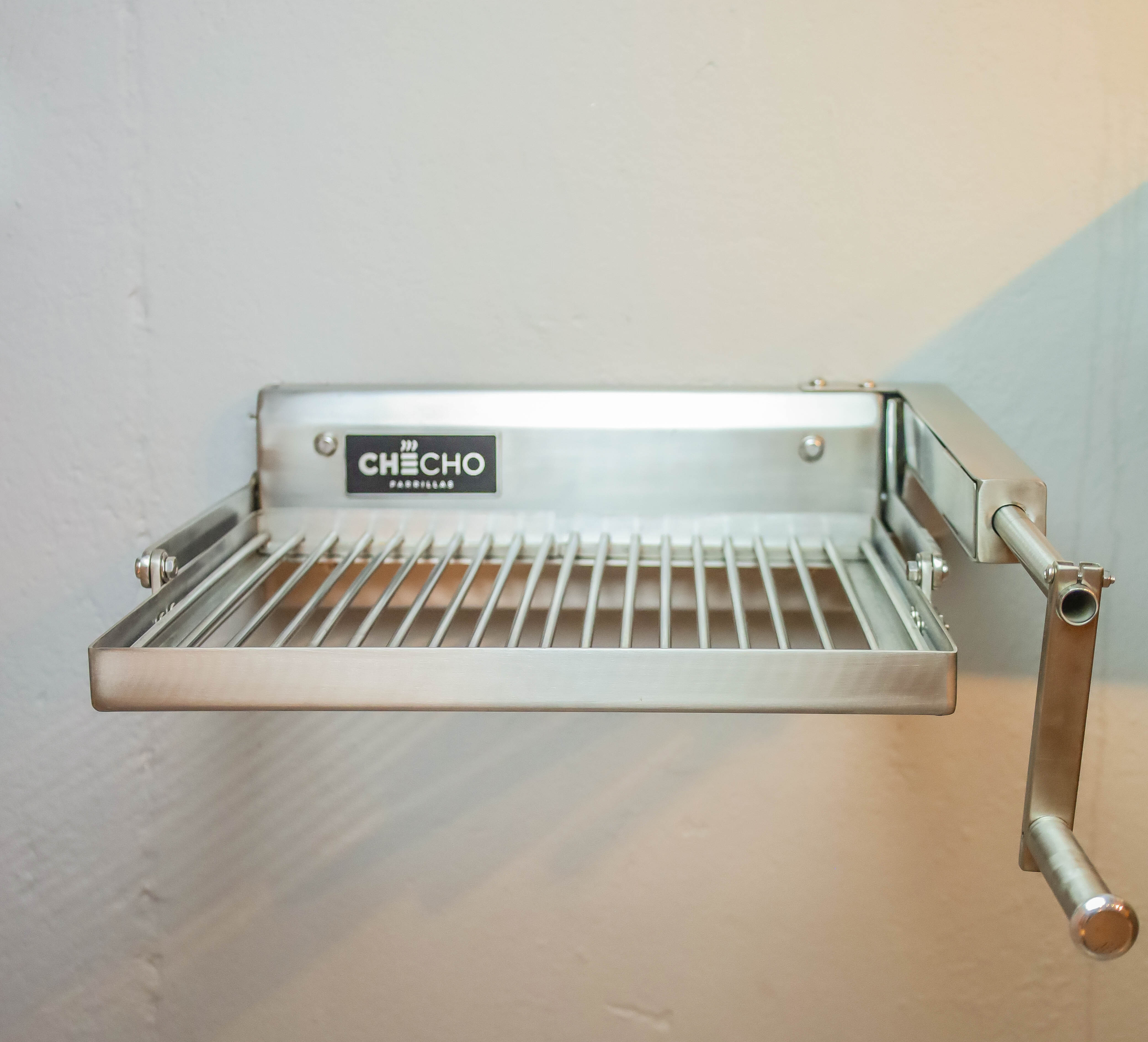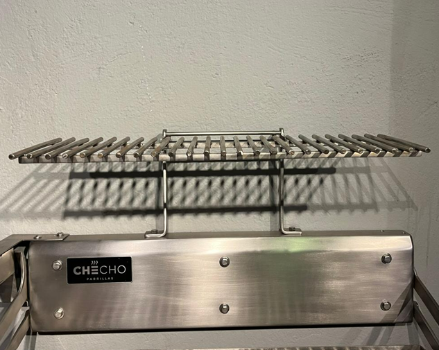 Produzida 100% em aço inox nobre e concebida no sul do Brasil por uma empresa gaúcha com mais de 40 anos de tradição, a Checho traz a leitura clássica da Parrilla Uruguaia: Grelha elevadiça no padrão uruguaio com barras de aço com 6,3 mm, regulagem da altura da grelha por manivela, com opção de escolha da posição da manivela à direita ou à esquerda para total adaptação ergonômica ao projeto e ao utilizador.